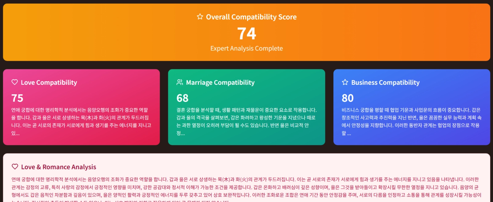 - 결혼궁합: 장기적인 결혼생활 적합도